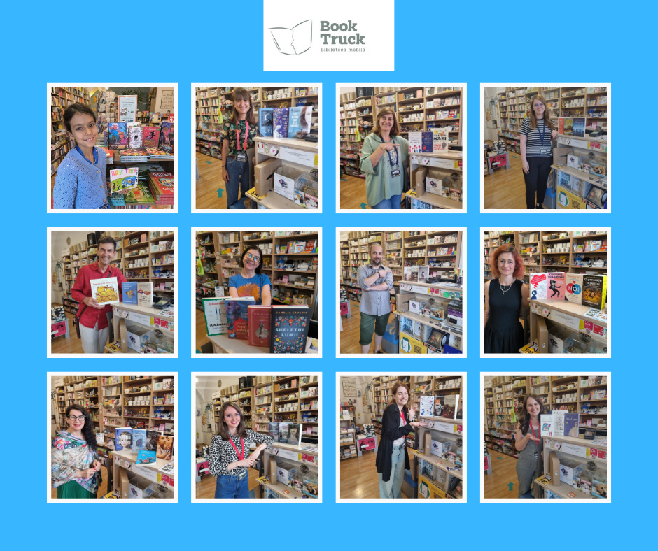 Ne-am dat întâlnire la Bookstory în ultima duminică a lunii iulii în cadrul evenimentului „Cumperi cărți și susții biblioteca mobilă BookTruck”. Gașca de bibliotecari a devenit gașca de librari, iar printre noi au fost bine-cunoscuții Mara Bria, Andrea Chiș, Dan Vodnar și Alex Moldovan.
