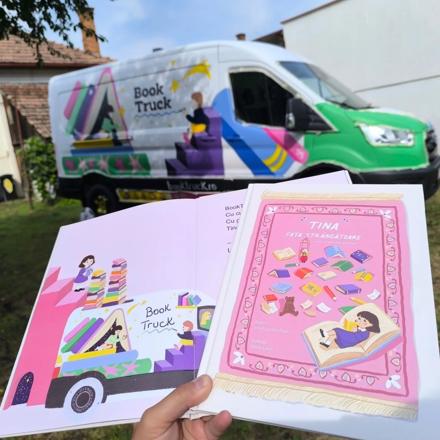 Tina avea de toate, dar nu împărțea nimic. Credea că așa va fi mai fericită. Până într-o zi când înțelege cum e să fii în locul celuilalt. Atunci își deschide inima și donează cărțile vechi bibliotecii mobile BookTruck. Așa descoperă că a dărui poate fi mai frumos decât a păstra, iar din acea zi, Tina va căuta mereu bucuria de a face bine. Ne-am bucurat să îi avem alături de noi la lansare pe Ionuț, creatorul Tinei și al primei cărți, „Dana și verișoarele”, Alexa Lincu, Sânziana Tarța care a citit povestea, Doina Gecse Borgovan care a mers prin sate cu biblioteca, dar și voluntari, oameni care fac parte din comunitatea BookTruck și susțin inițiativele asociației. Și pentru ca o lansare să fie ca la carte, am adus al treilea BookTruck care e aproape gata de drum. Noua dubiță e proaspăt vopsită de Alexa și te invită să pășești în universul lecturii. ❤❤