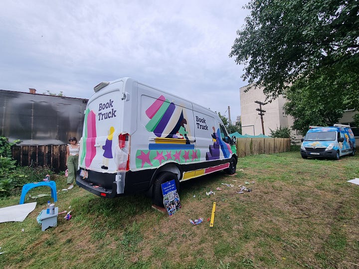 Mulțumim librarilor care au participat la evenimentul „Cumperi cărți și susții biblioteca mobilă BookTruck”, ediția din august! 🤗 Am primit multe cărți faine pe care le vom pune cât de repede pe rafturile noii biblioteci. Dar cel mai fain e când te plimbi prin librărie, răsfoiești cărțile (ba chiar le și mirosim 🤭), faci schimb de titluri de cărți cu voluntarii și afli noi scriitori. Ne-am bucurat să ne revedem cu Delinke Mai, Doina Borgovan, Andrada Lupșe, Alina Oancea, Diana Capatina și Ioana Otilia. Le suntem recunoscători și prietenilor de la librăria Bookstory pentru găzduire și că sunt alături de noi!